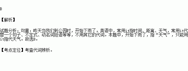 When we got to the park yesterday, ________started raining.