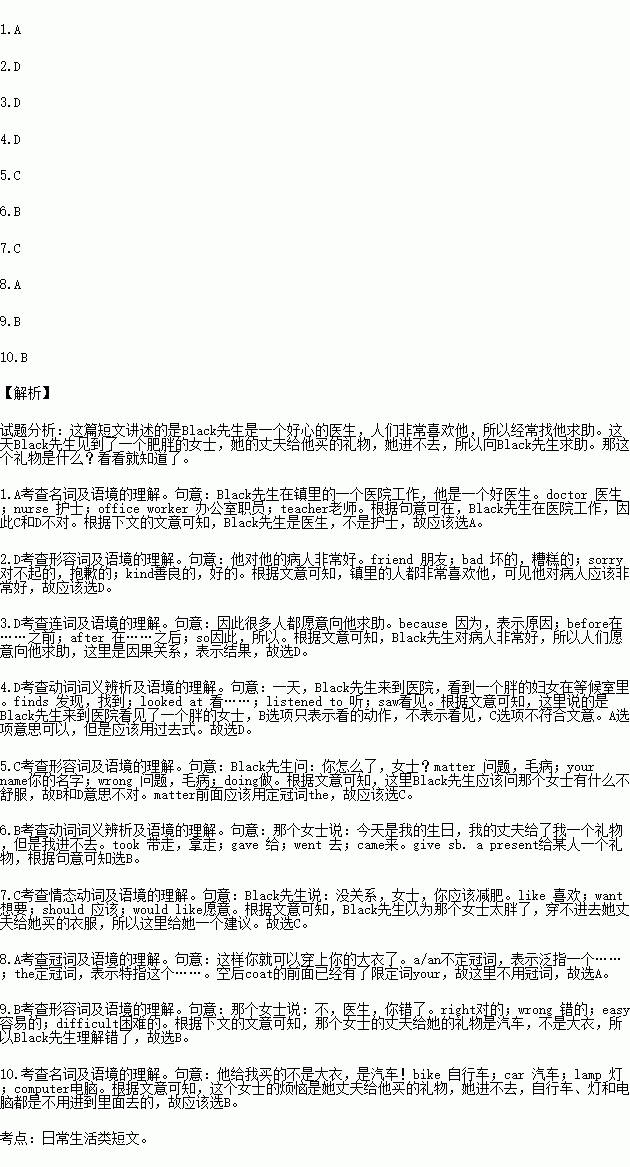 “It doesn’t matter, madam,” said Mr. Black. “You lose some weight. Then, you can go in your coat.” “You are ,doctor, ”said the woman. “He bought me not a coat, but a !