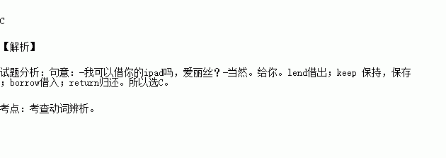 A. lend B. keep C. borrow D. return