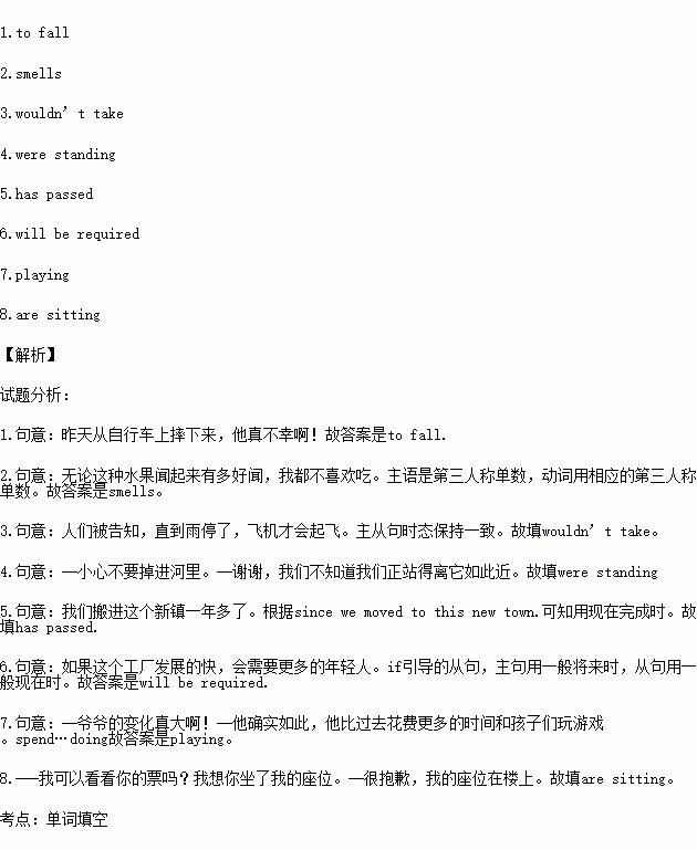 动词填空 用括号内所给动词的适当形式填空,并将答案写在答题卡标有题号的横线上。(本大题共8分,每小题1分)
