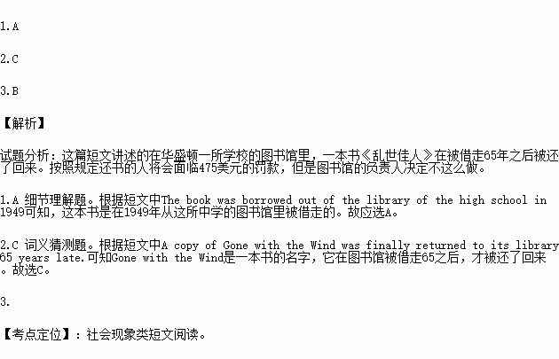 The book was borrowed out of the library of the high school in 1949, and disappeared until it was found in Maine, Us by Wayne. Wayne found the book in his father’s basement(地下室) and then offered to send it back to the school.