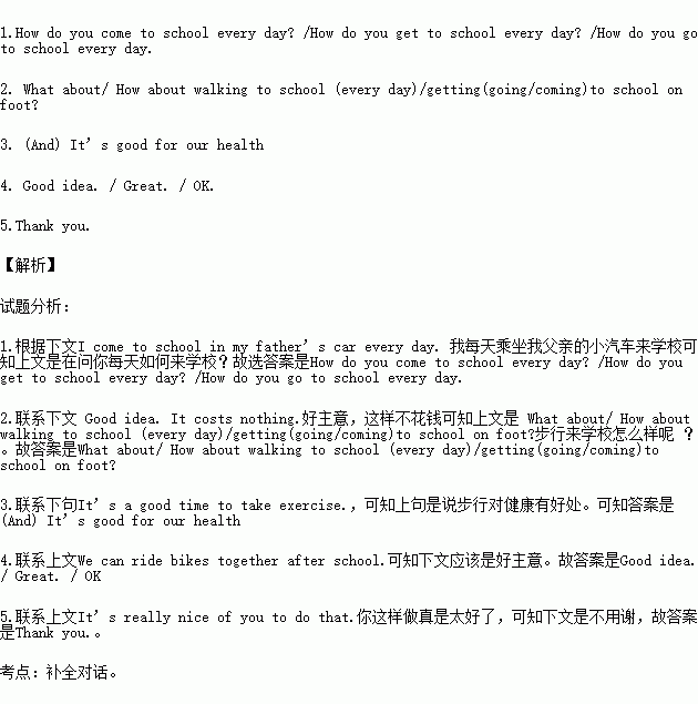 A: Good idea. It costs nothing. 3.____, too. It’s a good time to take exercise. But our house is too far. It takes me much time to walk here. Haha, I’ll be often late.