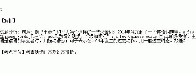 A few Chinese words, such as Tuhao and Dama, _to some English dictionaries in 2014.