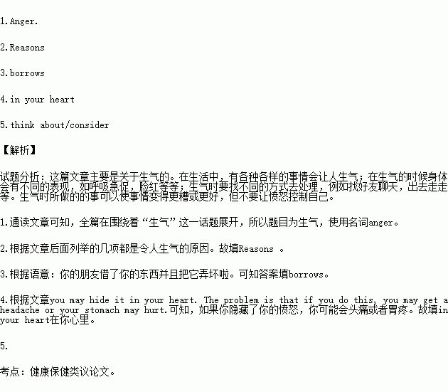 Anger is a kind of feeling. Many things can make you angry. When your teacher gives you too much homework, when your team loses an important game, when a friend borrows your favorite thing and then breaks it, you may get really angry.