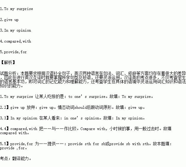 根据汉语提示完成句子。