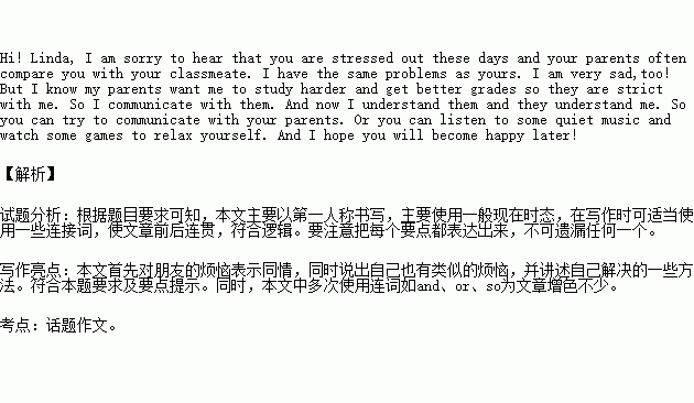 你的好朋友Linda, 现在面临很多压力,爸爸妈妈总是把她与其他同学相比较,因此她最近心情很不好。