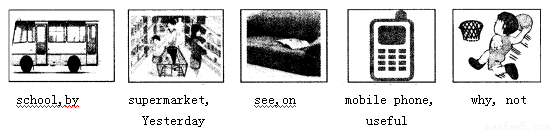 看图写句子。根据图示和所给的词,各写一个完整的句子,(每幅图限写一句话,必须用上所给的词)(共5小题,每小题1分,共5分)