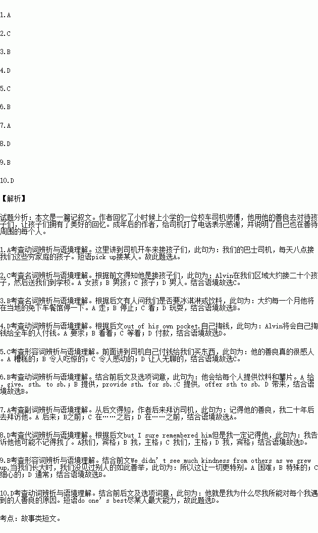 1.A. pick B. get C. make D. take
