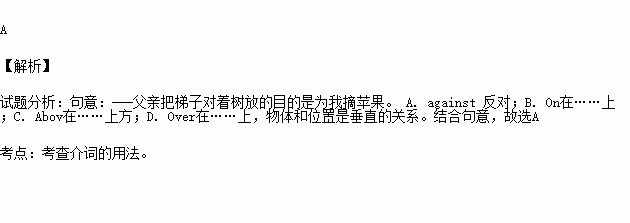 Father put the ladder(梯子)_________ the tree to pick the apples for me.