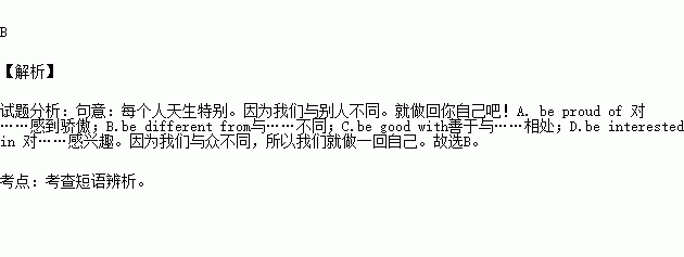 --- Everyone is born special, because we are ______ others. So just be yourself.