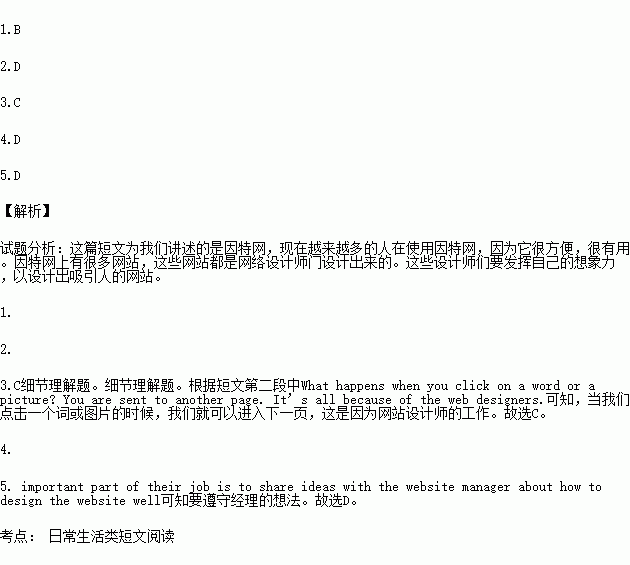 Where do these websites come from? They are made by web designers. What happens when you click on a word or a picture? You are sent to another page. It’s all because of the web designer. Web designers do a lot of work by using a computer programming language.