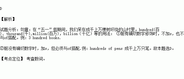 During the May Day holiday, we stayed in a mountain village with ______trees around.