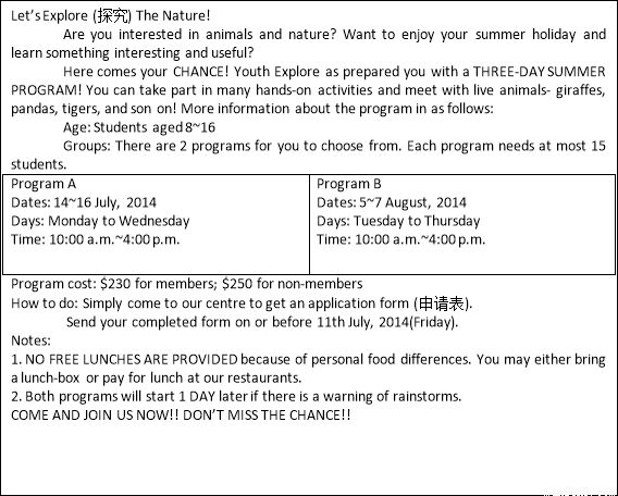 科目:初中英语 来源:2014-2015学年江苏东台南沈灶中学八年级上学情检测1英语试卷(解析版) 题型:阅读理解