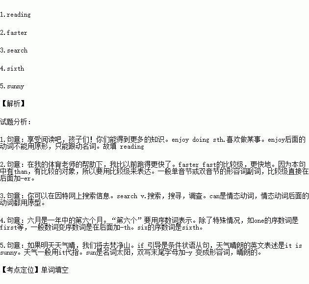 5.We are going to Mountain Fanjing if it is _________(sun) tomorrow.