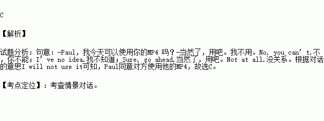 –May I use your MP4 today, Paul? --_______. I will not use it.
