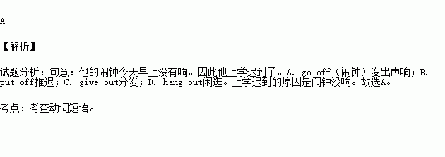 A. go off B. put off C. give out D. hang out