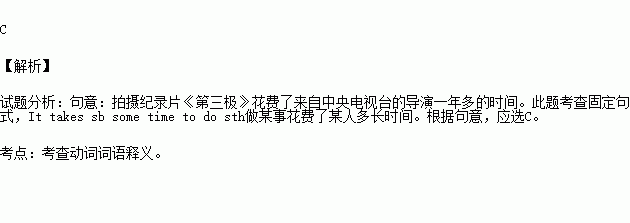 It ______ directors from CCTV more than a year to shoot (拍摄) the documentary The Third Polar.
