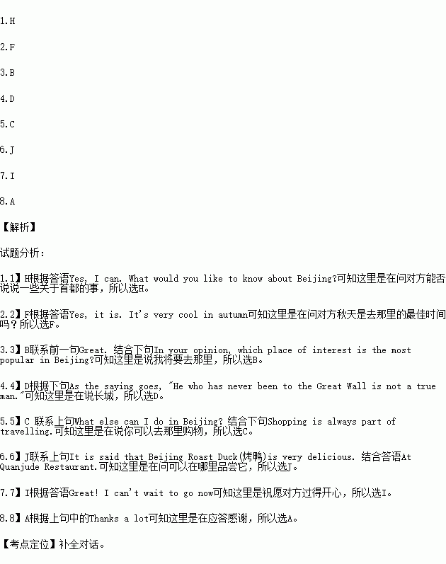 从A-J 选项中选出能填入空白处的最佳选项补全对话。 ( 选项中有两项是多余的)