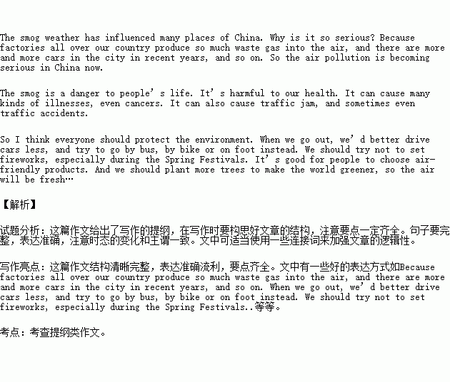 假设你是李华,对目前中国出现的雾霾(the smog)天气非常担忧,向China Daily(中国日报)的编辑写了一封英语信件,希望引起人们的重视,内容如下: