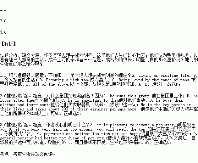 1.Which of the following is the reason that many young people want to become pop-stars?