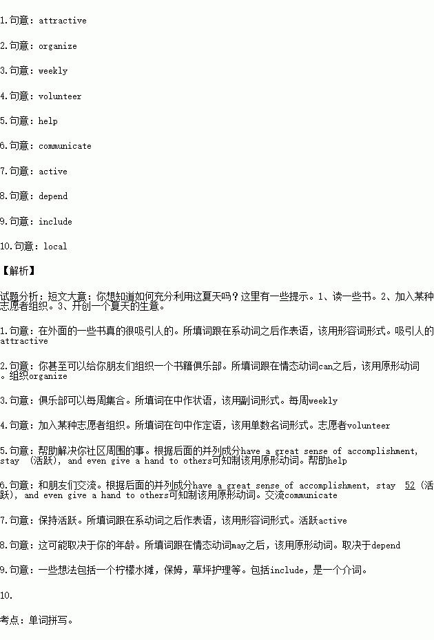 1. Read some books while you’re not at school. There are books out there that are really 1. (吸引人的). You can even 2. (组织)a book club for your friends. The club can meet 3. (每周)or as often as you want. Incorporate snacks, activities, and occasional field trips for the most fun.