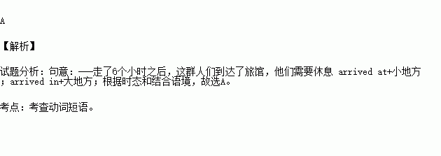 The group of people _____ the hotel after walking for 6 hours. They needed to have a rest.