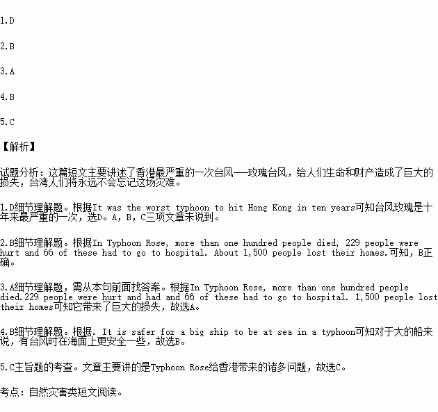 D.For ten years, people in Hong Kong haven’t seen a worse typhoon than Typhoon Rose.