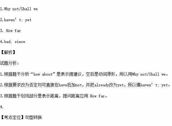 句型转换 按要求完成下列句子。每空限填一词。(共8分, 每空1分)