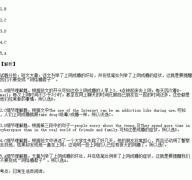 Do you know any people like these? They are part of a new addiction(瘾)called Internet addiction. Internet addicts spend at least thirty to forty hours online every week. The use of the Internet can be an addiction like drug use. People lose control of the time they spend on the Internet.