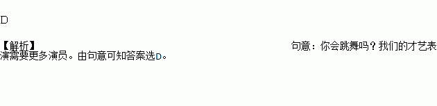 (2012山东枣庄)________ you dance?We need some more actors for the talent show.