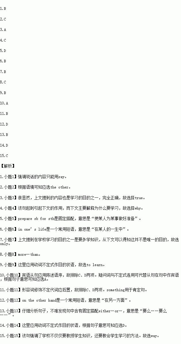15.A.subjects B.reasons C.way D.knowledge