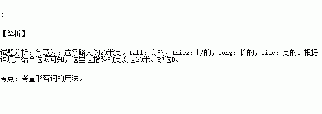 C. twenty metres long D. twenty metres wide