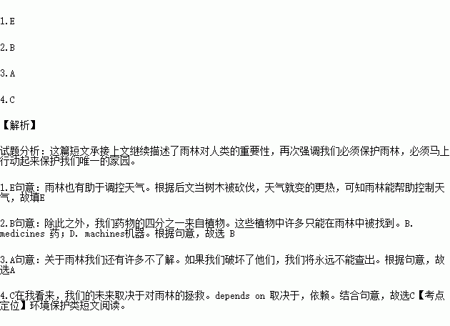 Rainforest also help to 1. the weather. When trees are cut down, it gets hotter. Besides, one quarter of our 2. come from plants. Many of these plants can be found only in rainforests. There is a lot that we have not learnt about rainforests. If we 3. them, we will never find out.