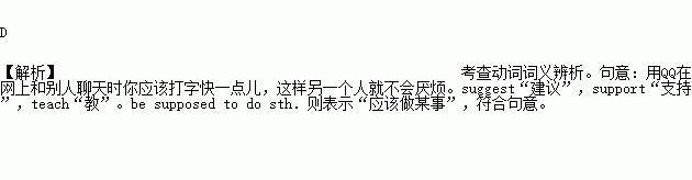 (2013菏泽)You are________to type quickly when talking to each other on QQ so the other person doesn’t get bored.