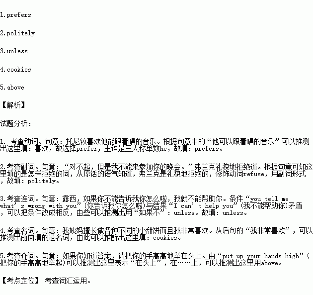 1.Tony _____ music that he can sing along with.