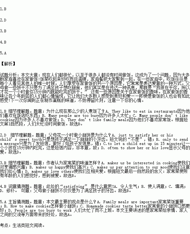 There is also something about the smell of home cooking. The smell of home cooking please people of all ages. It makes most of us feel good and loved------even if we are the ones doing the cooking. “Next time you smell a cake making, stop for a moment and pay attention to your mood(心情)。”