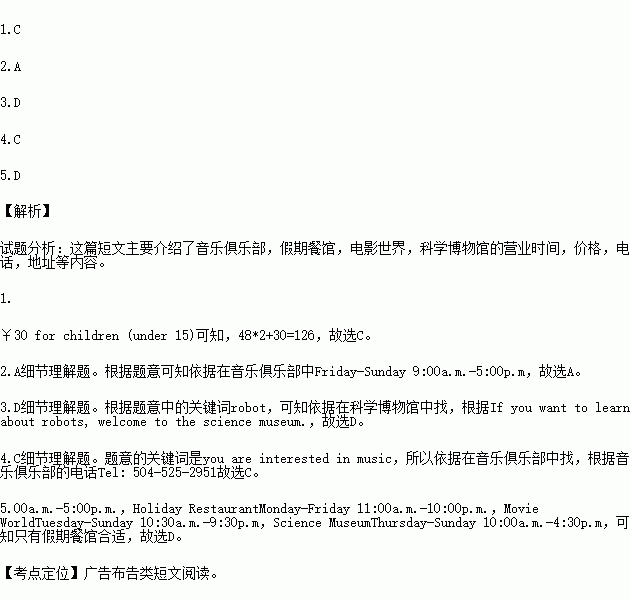 A. Music Club B. Holiday Restaurant