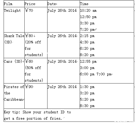1. If you only have time on the morning of July 26th 2014, which movie can you enjoy?
