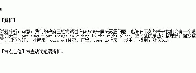 Our government has tried many ways to the smog(雾霾)problem. Maybe we'll have a clear sky in the near future.