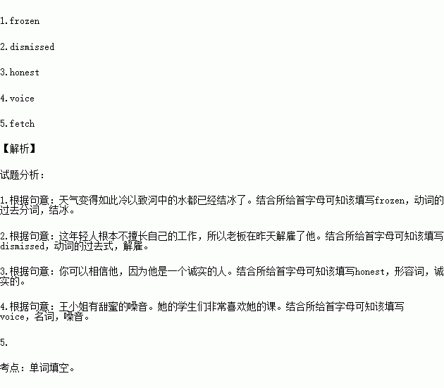 1.The weather becomes so cold that the water in the rivers has f_______.