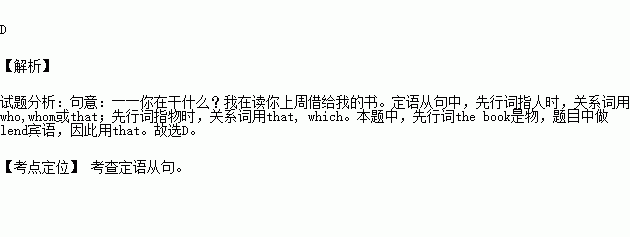 --- What are you doing? ---I’m reading the book ______you lent me last week.