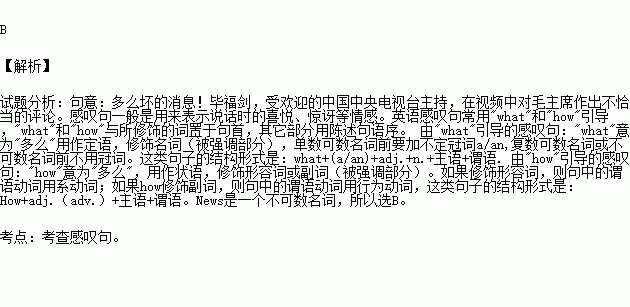 ______ bad news! Bi Fujian, the popular CCTV host, made improper(不恰当) remarks on Chairman Mao in a video.