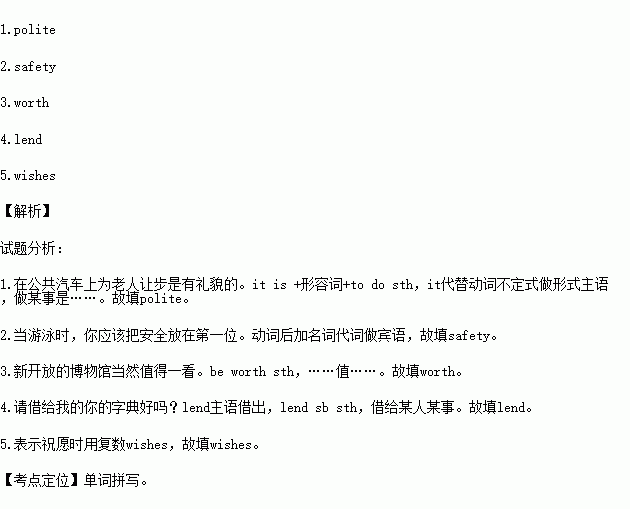 1.It is p_______(礼貌的)to offer seats to the old on the bus.