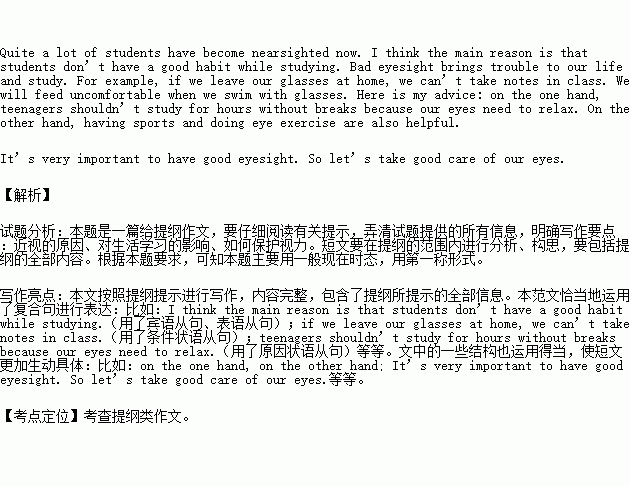 参考词汇: eyesight n. 视力 nearsighted adj. 近视的