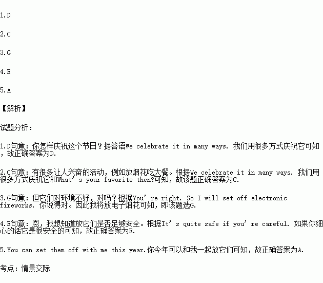 从方框中选出适当的句子,完成对话,有两项为多余选项。(5分)