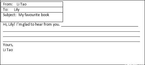 假如你叫李涛,最近和英国朋友Lily通过电子邮件谈论你最喜欢的书籍。请你根据