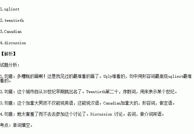 1.What a terrible painting! This is the _________(ugly) painting I’ve ever seen.