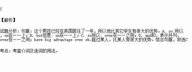 The boy had already lived in England for a year, _______ he had a big advantage _______ the other students.