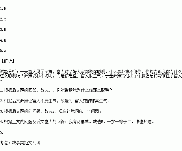 One day a rich man met Sam. The rich man asked, ¡°I hear you¡¯re very clever and nothing is difficult to you. 1. ¡±