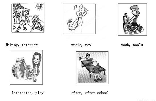 Dz´ÊÔì¾ä£º¸ù¾ÝËù¸øÍ¼»¼°Ìáʾ´ÊÓд³ö·ûºÏͼ»Òâ˼µÄ¾ä×Ó¡££¨10·Ö£©